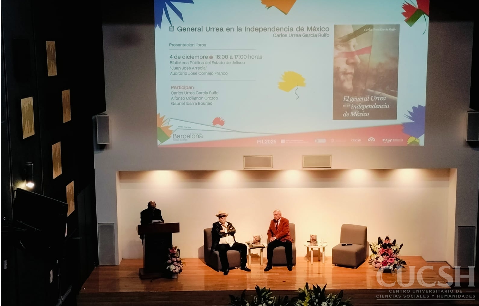 Más tarde, el auditorio recibió la presentación de El general Urrea en la independencia de México, novela de Carlos Urrea García Rulfo, acompañado por Alfonso Collignon Orozco y Gabriel Ibarra Bourjac. El autor habló con firmeza sobre la figura del general José Urrea, un personaje histórico cuya relevancia muchas veces ha quedado opacada por otros protagonistas de la época.